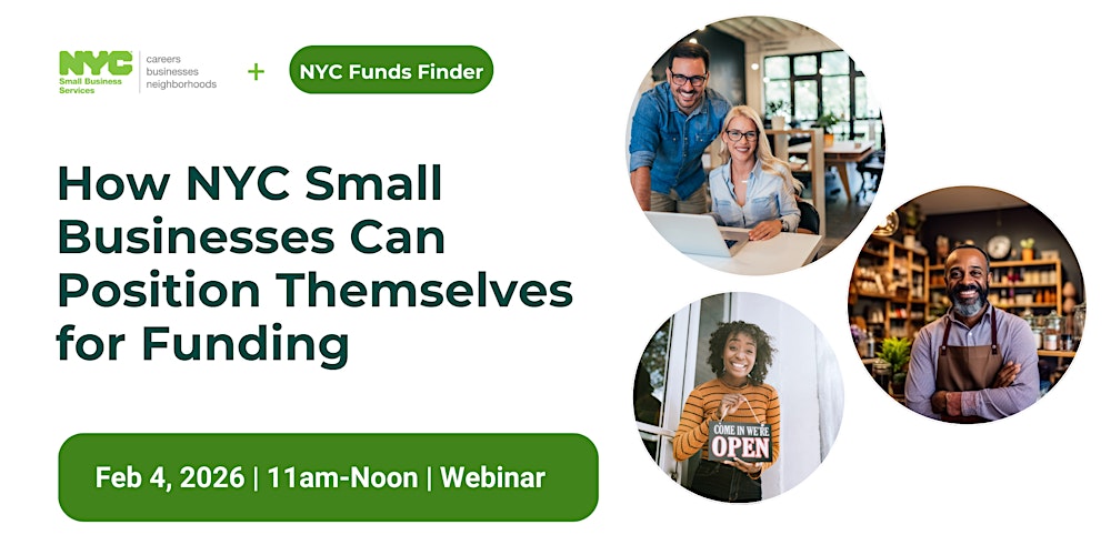 The NYC Department of Small Business Services helps unlock economic potential and create economic security for all New Yorkers by connecting New Yorkers to good jobs, creating stronger businesses, and building thriving neighborhoods across the five boroughs. You can register for all of our free events and courses, including BE NYC and WE NYC events on Eventbrite. For questions about individual courses or to register over the phone, please contact our staff at one of our NYC Business Solutions Centers. For more information on all of our services, call 888-SBS-4NYC (888-727-4692) or visit nyc.gov/sbs.