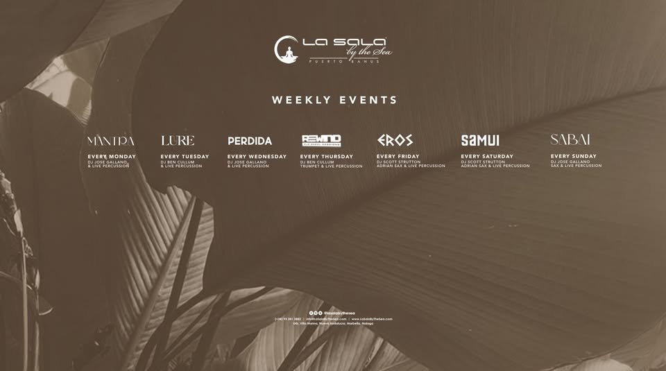 Espera una mezcla suave de groove y house, con sonidos de afro, latino y funky house, todo acompañado de vistas al atardecer y la inconfundible atmósfera de La Sala by the Sea.