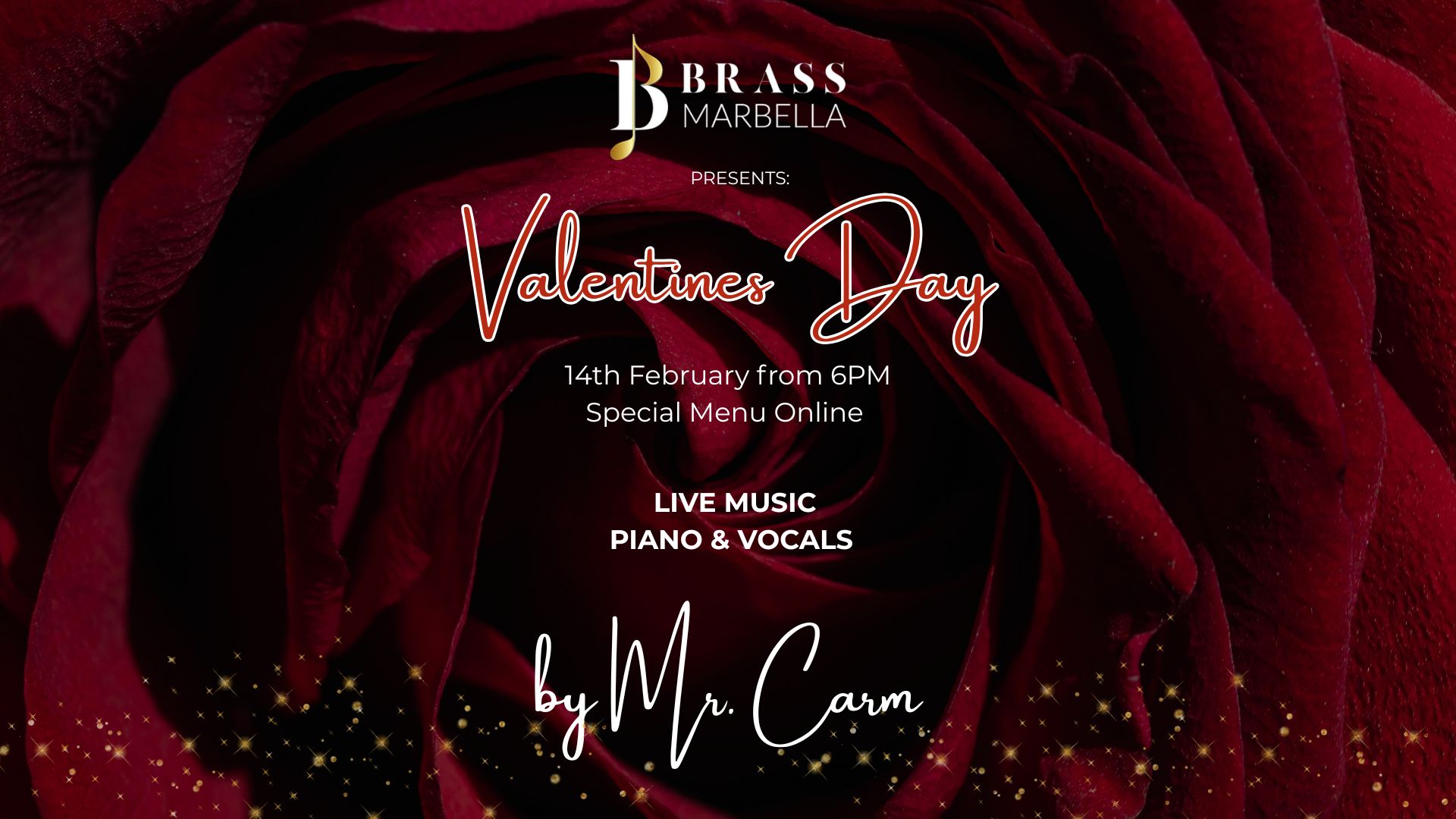 Disfruta del Día de San Valentín en Brass Marbella con una actuación especial en vivo de Mr. Carm en el piano y la voz. Descubre nuestro menú especial creado por el Chef Alexandre, diseñado para hacer que tu noche sea realmente memorable.”