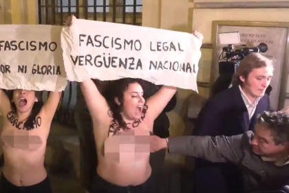 Man who squeezed topless protester’s breast at mass for dictator Franco in Spain is arrested